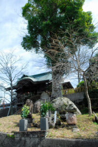 長寿寺には奥の院があり、境内から車で5分ほど離れた木原山(雁回山)山頂にあり、かつて本堂の不動明王を厚く信仰したという源為朝が築いた城跡に建立されたと伝えられています。