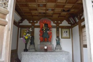 さて山門から続く切り石で整えられた石段を上ると途中に霊場ご本尊が祀られている不動堂があります。