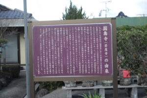 圓壽寺は、岩屋寺石仏から背後の丘を切り開いて作った道路を北に約150メートル登ったところ、上野ヶ丘の東端、丘陵上の見晴らしの良い場所にあります。
