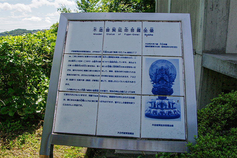 延暦十一年(792年)伝教大師・最澄が宇佐八幡宮に参拝した後、阿蘇山に赴き帰りに柞原宮弥勒寺に仮泊した夜に普賢菩薩が一時姿を現したのを称え、普賢菩薩像を刻したとあります。そして時の国主が普賢堂を建立し、安置したそうです。