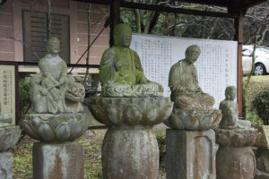 また、境内には元禄時代の石工・平川与四右衛門一族の石仏が数多く安置され、如意輪観世音石像は市の文化財に指定されています。