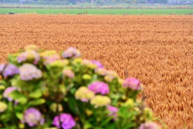 ここでいう「麦秋(ばくしゅう・むぎあき)」とはまるで稲が実りのシーズンを迎えた時のように黄金色に色づき収穫の時期を表していて、夏の季語ともなっています。