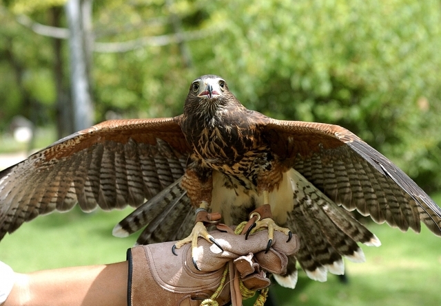 タカの語源は「猛々しい」の「タケ」が「タカ」に転じたという説が有力で、気難しいですが、繊細な野生の猛禽類です。