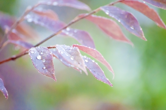 時雨は「八入(やしお)の雨」という呼び方もあって、これは染色する際、染料を一度だけ浸すことを「一入(ひとしお)」といい、何度も浸して濃く染めあげることを「八入(やしお)」というところから来ているそうです。